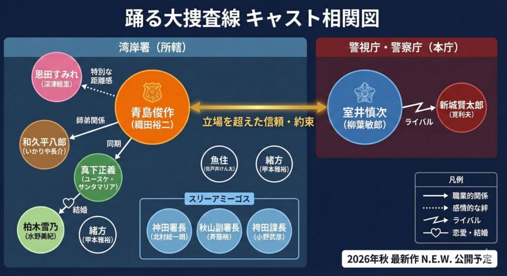 そして2026年秋、ついに最新作「踊る大捜査線 N.E.W.」が公開される。青島俊作が帰ってくる。このタイミングで相関図を頭に入れておけば、N.E.W.を120%楽しめること間違いなしだ。