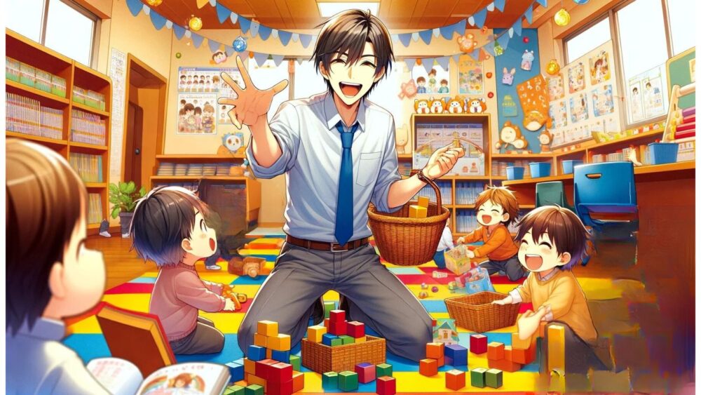 - 理事長の提案で、竜一は学園内の保育ルームでベビーシッターとして働くことになります。
